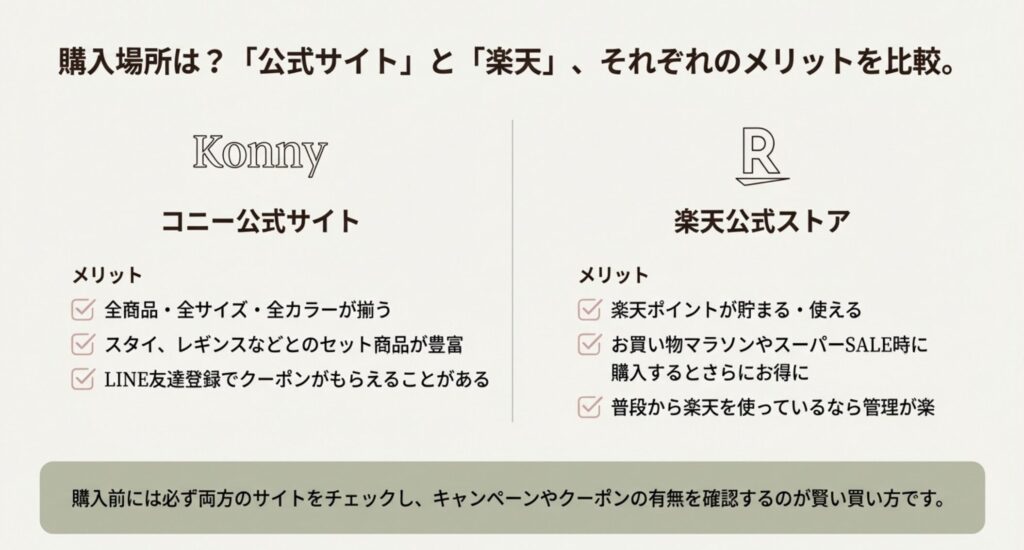 どこで買うのが一番お得か、気になりますよね。公式オンラインストアと楽天市場店、それぞれの特徴を比較してみましょう。