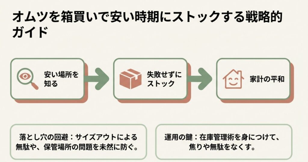 さて、どこで買うべきかが見えてきたら、次は「いかに失敗せずにストックするか」という運用面のお話をしますね。オムツの箱買いには特有の「落とし穴」があります。ここを回避できるかどうかが、家計の平和を守る鍵となりますよ。