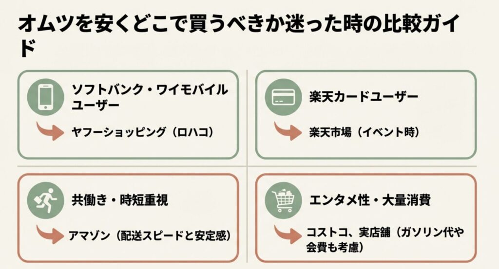 オムツを買う場所を決めるとき、単純な「表示価格」だけで選んでいませんか?実は、オムツの安さは「どの経済圏をメインで使っているか」によって180度変わります。ここ、一番大切なポイントなんです。